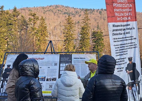 2月27日至3月1日,罗马尼亚法轮功学员在锡奈亚设立展位,弘扬法轮大法,唤起人们关注信仰真、善、忍的人群正在中国遭受的残酷迫害。
